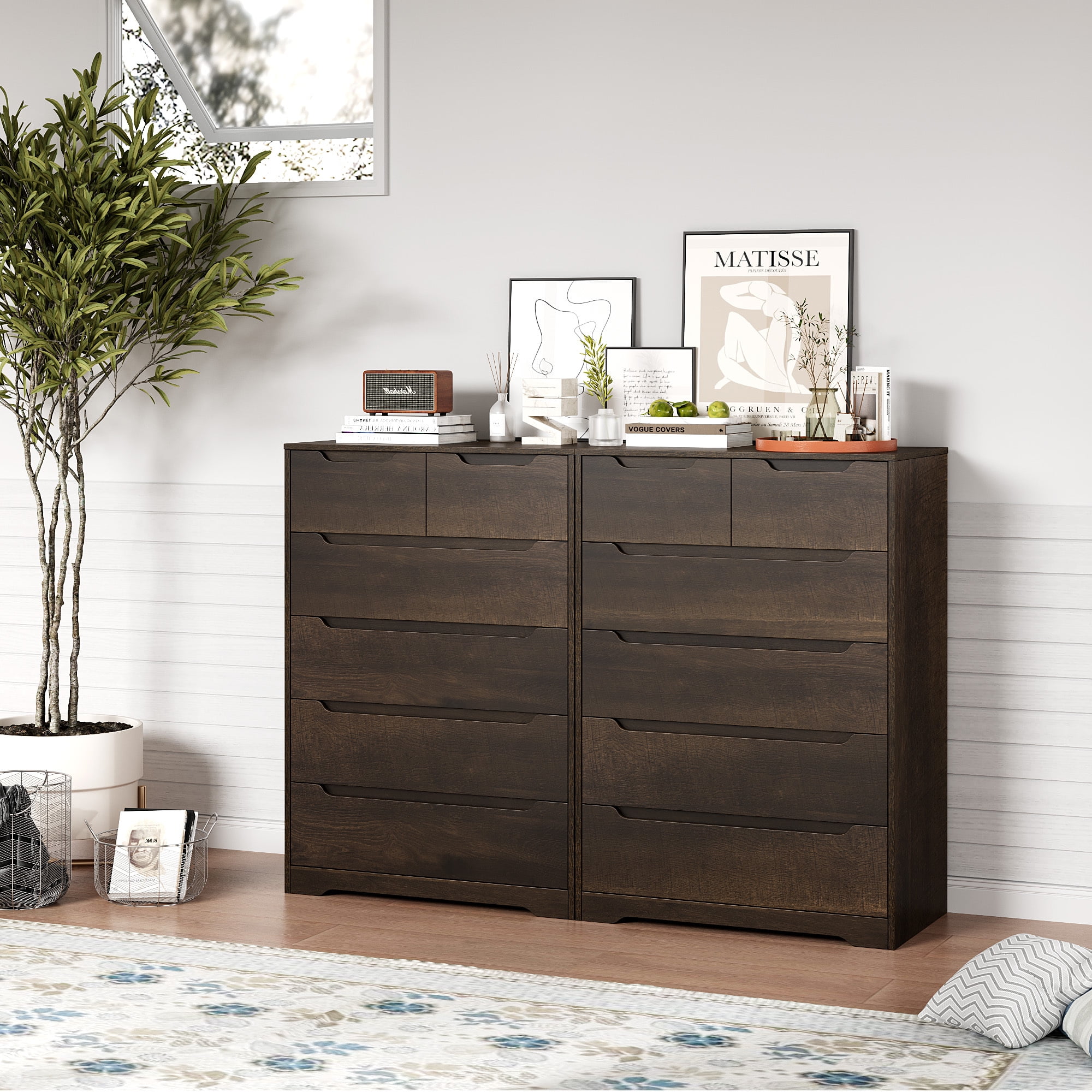 Homfa 6 Drawer Bedroom Dresser Tall Storage Cabinet Chest Of Drawers For Living Room Dark Brown Walmart Com